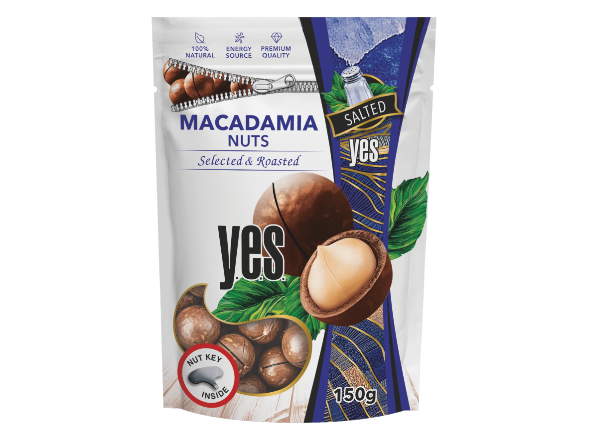 YES macadamia nuts, pre-cut, roasted and salted, 150g